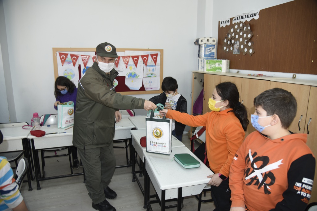 Okul Müdürümüz İsrafil Bayrak, 3/C ve 3/E sınıf öğretmenlerine ve öğrencilerine yapılan ziyarette Orman Bölge Müdürü Dr. Mimar Sinan Özkaya, "Öğrencilerimizden Ali Kaan Yavuz ve Azra Nur Özden den gelen tebrik kartları bizim için çok önemliydi, bizleri gerçekten duygulandıran ifadeler kullanılmıştır. Bizde kendileriyle ve hepinizin de aynı duyarlılıkta olduğunuzu düşünerek sizlerle tanışmak, günün anısına da küçük bir hediye vermek istedik. Umarım çevre ve ormanlarımıza, Orman Bölge Müdürlüğümüze olan bu duyarlılığınız hep devam eder. Minik kalplerimize ve öğretmenlerimize teşekkür eder, bundan sonraki eğitim hayatınızda başarılar dilerim" dedi.